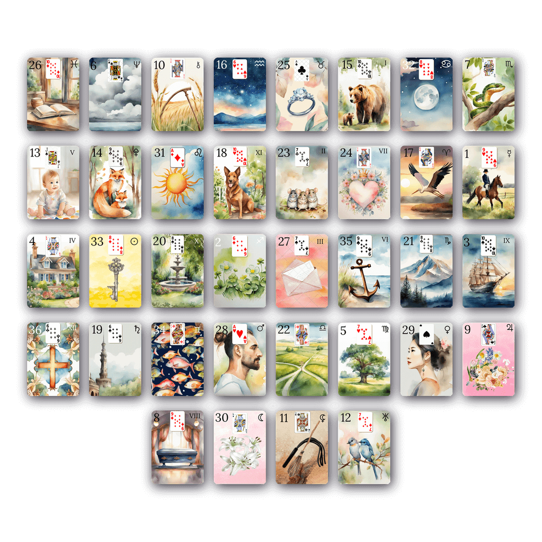 Start with the 36 cards, explore combinations, or try a free reading designed to help you interpret with confidence.